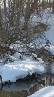 На пруду уже появились проталины, и пернатые снова начали активно плавать и исследовать территорию.