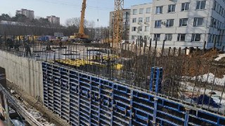Рабочие уже смонтировали шпунтовое ограждение и залили фундаментную плиту. Сейчас возводят стены и перекрытие подвала.